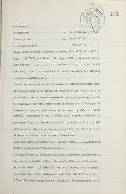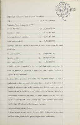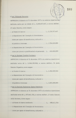 Parte prima - Gestioni di credito Approvazione dei bilanci al 31 dicembre 1977
