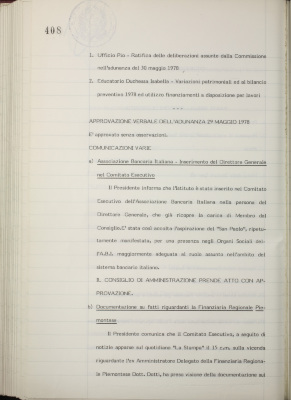 Parte seconda - Gestioni di beneficenza Ufficio pio, ratifica delle deliberazioni prese dalla Commissione in adunanza 30 maggio 1978 (verbale a parte)