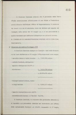 Comunicazioni varie: Associazione Bancaria Italiana, inserimento del direttore generale nel Comitato esecutivo; documentazione dei fatti riguardanti la Finanziaria Regionale Piemontese; finanziamento in pool al Gruppo Sir - Rumianca; piano di risanamento del Gruppo Liquichimica; consorzio di garanzia per l'aumento del capitale Olivetti; istituzione filiale di Francoforte; situazione dei conti al 31 maggio 1978; operazioni di fido e di mutuo fondiario deliberate dal Comitato esecutivo; operazioni mutuo della Sezione Opere Pubbliche deliberate dal Comitato esecutivo; situazione del personale
