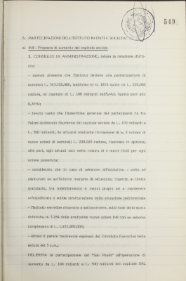 Partecipazioni dell'Istituto in enti e società