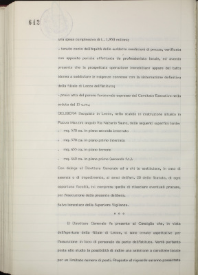 Proposta immobiliare per la sistemazione definitiva della filiale di Lecce