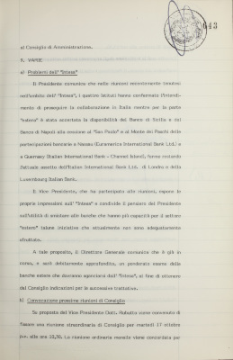 Varie: problemi dell'«Intesa»; convocazione prossime riunioni di Consiglio