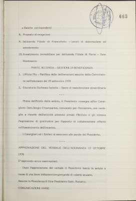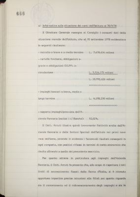 Comunicazioni varie: informativa sulla situazione dei conti dell'Istituto al 30 settembre 1978; operazioni di fido e di mutuo fondiario deliberate dal Comitato esecutivo; operazioni mutuo della Sezione Opere Pubbliche deliberate dal Comitato esecutivo; situazione del personale; partecipazione a prestiti internazionali ed assunzione di prestiti esteri; informativa su riunione «Intesa»; iniziative dell'Istituto in Italia e all'estero per ampliamento della propria rete operativa; altre comunicazioni del direttore generale; convegno sulla pianificazione ed il controllo gestionale; monografie artistiche per gli anni 1980-81