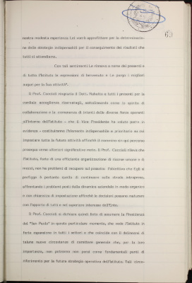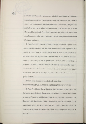 Saluto ufficiale al nuovo Presidente dell'Istituto