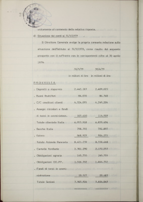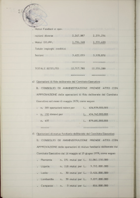 Comunicazioni varie: erogazioni eseguite sul fondo a disposizione; emolumenti, medaglie di presenza e diarie ai consiglieri e sindaci dell'Istituto; lettera delle organizzazioni sindacali; situazione dei conti al 31 maggio 1979; operazioni di fido deliberate dal Comitato esecutivo; operazioni di mutuo fondiario deliberate dal Comitato esecutivo; operazioni di mutuo della sezione autonoma opere pubbliche deliberate dal Comitato esecutivo; situazione del personale al 31 maggio 1979; risultanze delle principali aziende di credito al 31/12/1978; impegni di firma e cassa; richiesta di perequazione del trattamento pensionistico erogato dalla Cassa di Previdenza; informativa sull'andamento degli scioperi in atto presso l'Istituto;