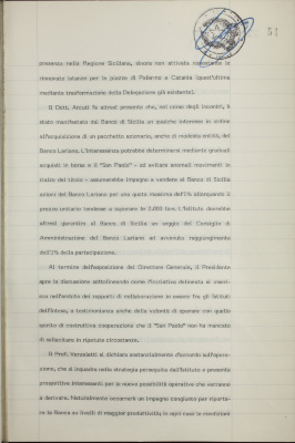 Partecipazione dell'Istituto in enti e società: banca de sud S.p.A., Messina; iniziativa congiunta con il Banco di Sicilia e la Banca del Sud nel settore del leasing finanziario; Banca Italo Rumena; iniziativa dell'Istituto nel settore della revisione aziendale; iniziativa dell'Istituto negli USA