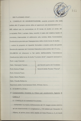 Nomina commissione giudicatrice delle borse di studio «Luciano Jona»