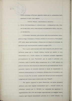 Parte prima - gestioni di credito Spese patrimoniali d'esercizio. Consuntivi del primo semestre 1979 e previsioni aggiornate per il secondo semestre