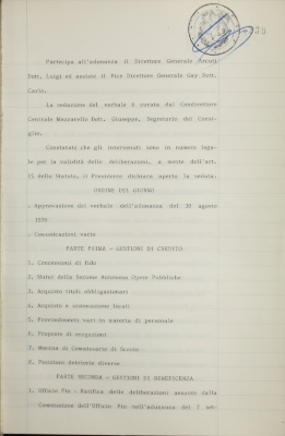 Parte seconda - gestioni di beneficenza. Ufficio pio. Ratifica delle deliberazioni assunte dalla Commissione in adunanza 7 settembre 1979 (verbale a parte)
