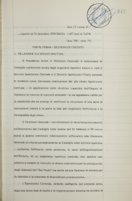 Parte prima - gestioni di credito. Relazione sui servizi ispettivi