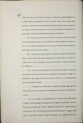 Borse di studio «Luciano Jona» per il perfezionamento nel campo della cultura economica