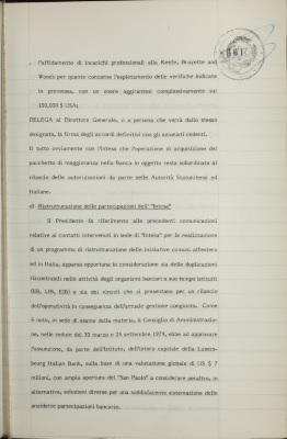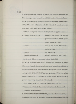 Partecipazioni dell'Istituto in enti e società: Istituto per l'edilizia economica e popolare di Torino S.p.A.; costituzone di una sezione di Credito industriale; National Savings and trust company - Washington D.C.; Compagnia europea di revisione ed organizzazione S.p.A.