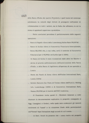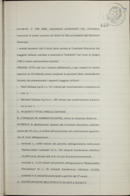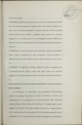 Partecipazioni dell'Istituto in enti e società: Società di cooperazione agricola S.p.A., Sanremo; possibile costituzione di finanziaria mista italo-venezuelana; iniziative all'estero
