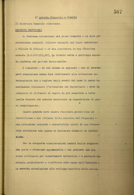 Parte prima - gestioni di credito Relazione del Direttore generale sull'andamento delle operazioni nel bimestre marzo-aprile 1939