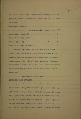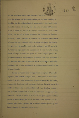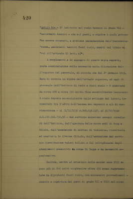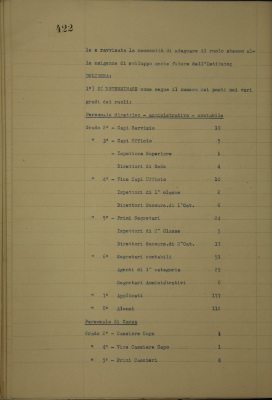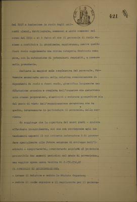 Proposta di ampliamento del ruolo organico del personale dell'Istituto