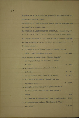 Comunicazione delle assegnazioni sui fondi destinati per enti di Torino e fuori Torino in sede di riparto utili esercizio 1941