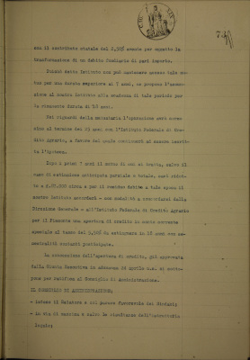 Istituto federale di credito agrario per il Piemonte, ratifica di apertura di credito in c/c speciale