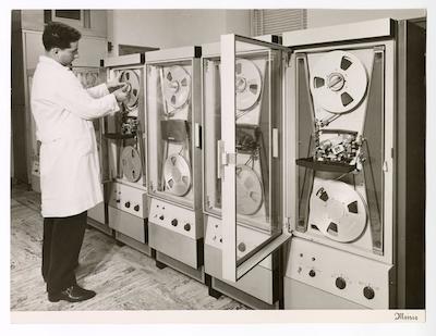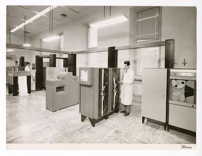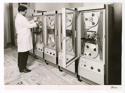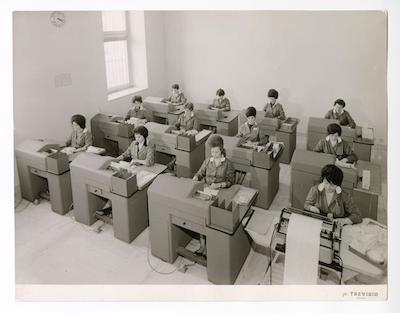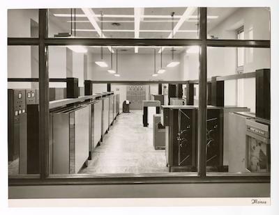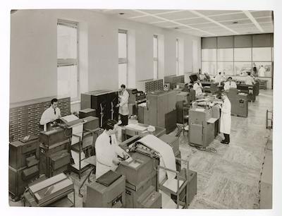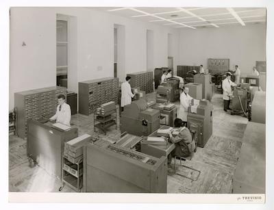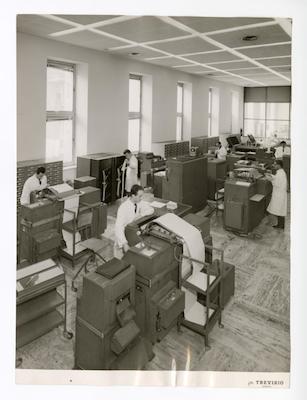 Fotografie del centro meccanografico di Piazza Bernini a Torino