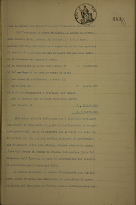 Municipio di Torino, ratifica di apertura di credito senza garanzie reali