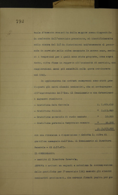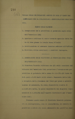 Assegnazione delle gratifiche al personale sugli utili dell'esercizio 1943