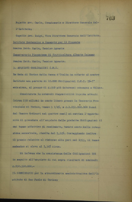 Nomine di rappresentanti in enti diversi: Istituto di credito per le imprese di pubblica utilità, Roma; Consorzio nazionale per il credito agrario di miglioramento; Consorzio per la concessione di mutui ai danneggiati dal terremoto del 1908; Consorzio per sovvenzioni ipotecarie eruzione Vesuvio 1906; Istituto zootecnico e caseario per il Piemonte; Osservatorio piemontese di frutticoltura Alberto Geisser