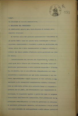 Relazione del Commissario uscente avv. Carlo Pajetta