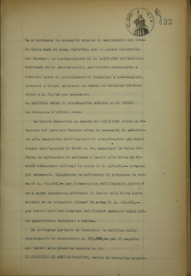 Ratifica spese di sistemazione agenzia 11 di Torino