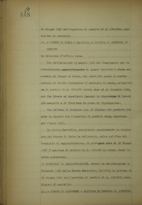 Istituto dei ciechi di Torino, ratifica di proroga di apertura di credito