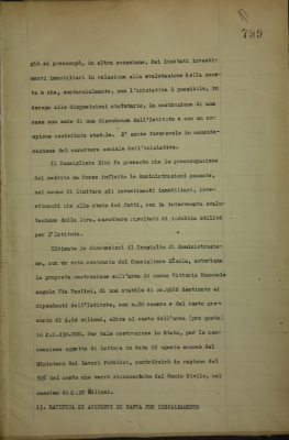 Ratifica di delibera per la costruzione della casa per gli impiegati dell'Istituto