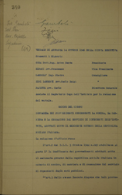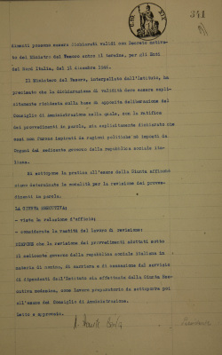 Convalida dei provvedimenti concernenti la nomina, la carriera e la cessazione dal servizio di dipendenti dell'Istituto, adottati sotto il sedicente governo della Repubblica Sociale Italiana