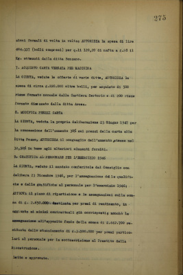 Gratifica al personale per l'esercizio 1946