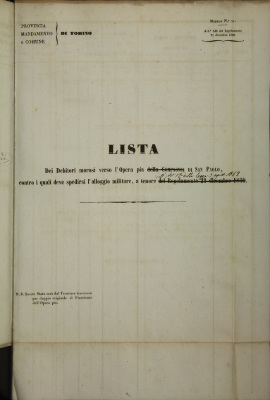 Procedimento contro debitori morosi verso le Opere Pie di San Paolo