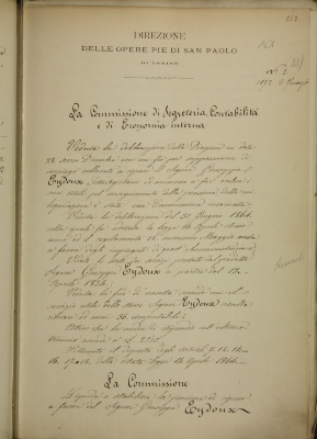 Liquidazione della pensione di Vittorio Eydoux, guardamagazzini contabile del Monte di pietà