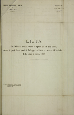 Procedimento contro debitori morosi verso le Opere pie di San Paolo