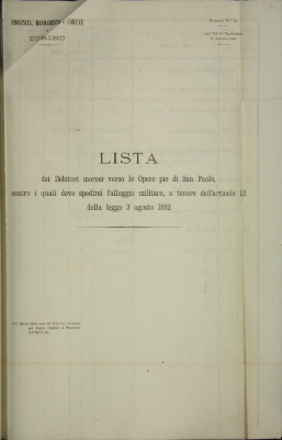 Procedimento contro debitori morosi verso le Opere pie di San Paolo