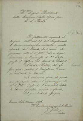 Nomina a commesso di terza classe presso il Monte di pietà di Sardi Pietro