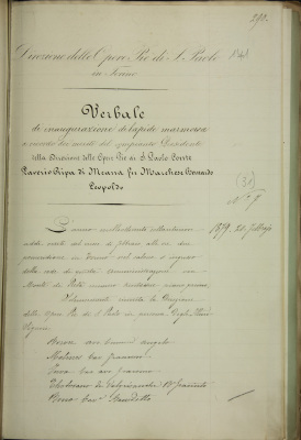 Inaugurazione di lapide marmorea, ricordo dei meriti del compianto presidente della direzione delle Opere pie di San Paolo, conte Saverio Ripa di Meana, fu marchese Bernardo Leopoldo