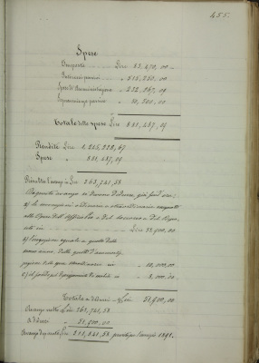 Approvazione dei bilanci preventivi delle Opere pie per il 1891 e relazione del direttore Richetta sui detti bilanci