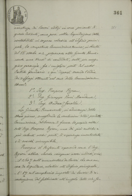 Competenze all'ing. Prospero Peyron. Provvedimenti