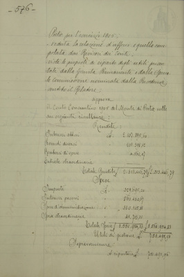 Conti consuntivi delle Aziende dell'Istituto per l'esercizio 1905, Monte di pietà