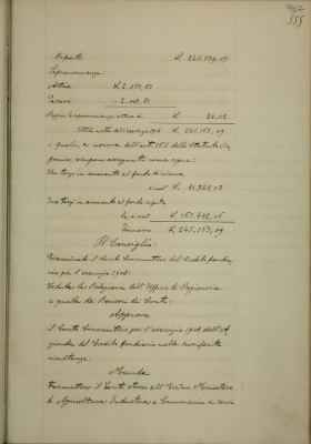 Conto consuntivo per il 1908 del Credito fondiario