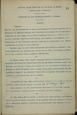 Nomina del comm. dott. Pietro Giuseppe Fabris a Direttore generale dell'Istituto