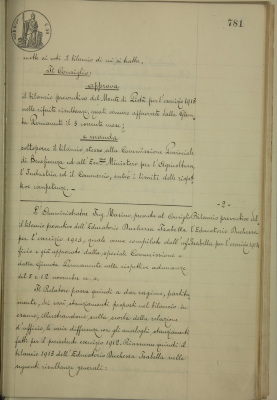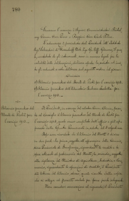 Bilancio preventivo del Monte di pietà per l'esercizio 1913