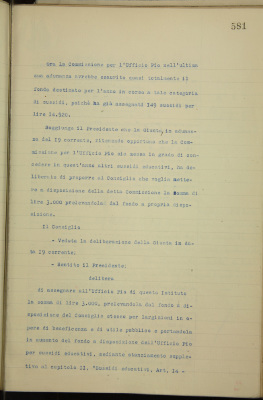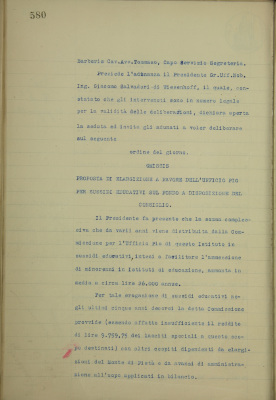 Proposta di largizione a favore dell'Ufficio Pio per sussidi educativi sul fondo a disposizione del Consiglio