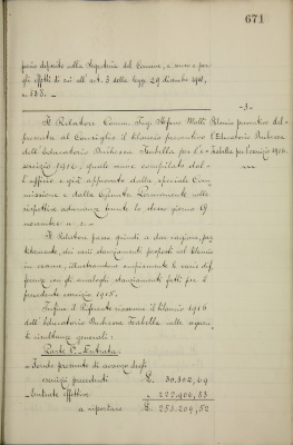 Bilancio preventivo dell'Ufficio pio per l'esercizio 1916