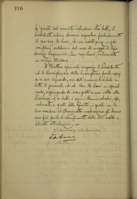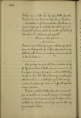 Accenno ai risultati finanziari dell'esercizio 1915. Encomio al personale per l'opera straordinaria prestata durante l'anno in iscadenza. Encomio speciale al cav. De Rossi