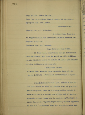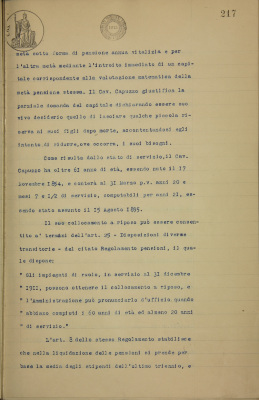 Cav. Capuzzo Edoardo, capo servizio controllo in questo Istituto. Domanda di collocamento a riposo