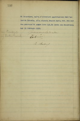 Signora Bracco Maria, vedova Bellone. Domanda di liquidazione di pensione