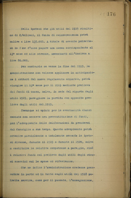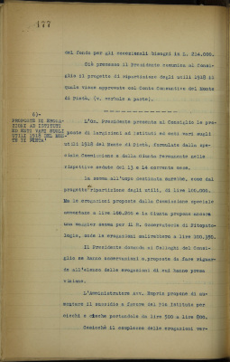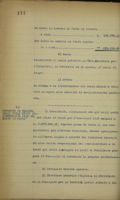 Progetto di riparto degli utili netti dell'esercizio 1918 del Monte di pietà
