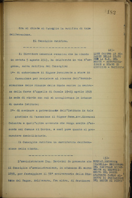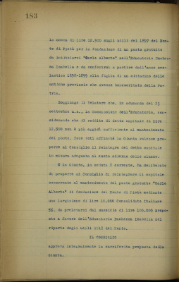 EDI. Reintegro del capitale occorrente al mantenimento del posto gratuito Carlo Alberto di fondazione del Monte di pietà